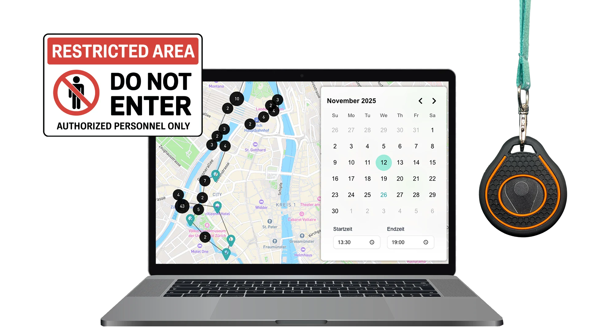Track people in restricted areas to get an instant overview of who is in the area, and where they are. Get notifications for people leaving or entering the zone, and leverage the built-in panic button for communication to the command post.